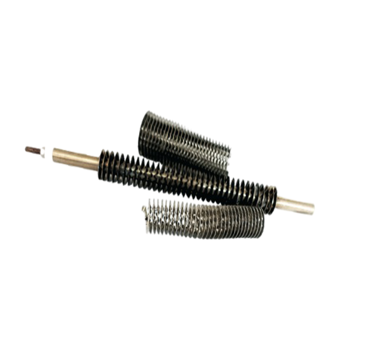 O princípio de funcionamento da resistência tubular aletada baseia-se principalmente na condução e transferência de calor por convecção. Quando um fluido quente (como água quente ou vapor) passa pelo aquecedor aletado, o calor é primeiramente transferido para a aleta por condução através da parede do tubo. Como as aletas geralmente são feitas de materiais com boa condutividade térmica (como cobre ou alumínio), o calor é rapidamente transferido da parede do tubo para a superfície da aleta.
